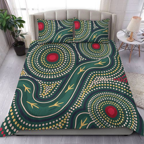Australia Aboriginal Bedding Set – Green Aboriginal Dot Art Style Vector Painting Bedding Set