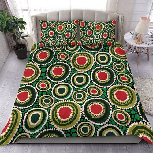 Australia Aboriginal Bedding Set – Green Dot Art Circle Pattern From Aboriginal Art Bedding Set