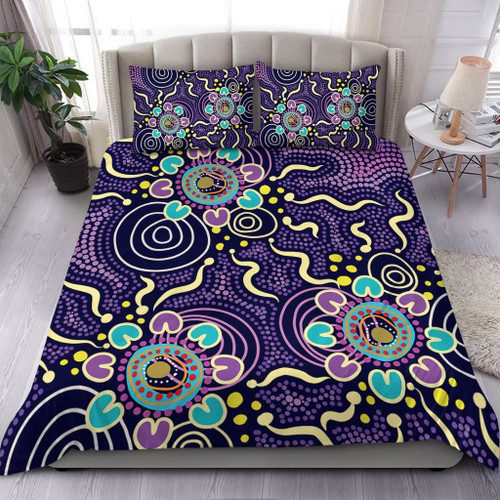 Australia Aboriginal Bedding Set – Purple Painting With Aboriginal Inspired Dot Bedding Set