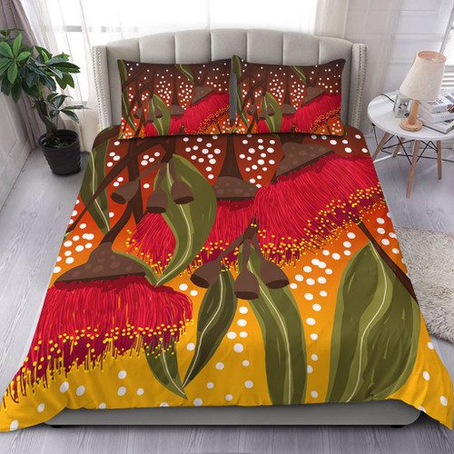 Australia Aboriginal Bedding Set – Red Eucalyptus Aboriginal Dot Art Bedding Set