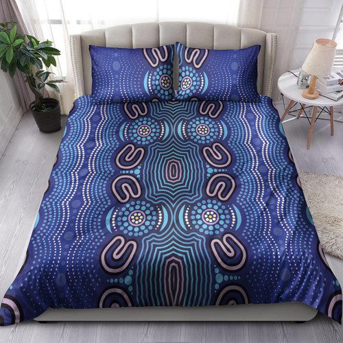 Australia Aboriginal Inspired Bedding Set – Aboriginal Connection Concept Artwork Purple Color