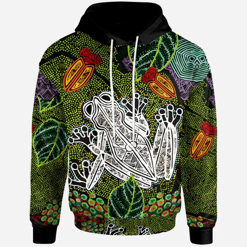 Australia Aboriginal Inspired Hoodie – Custom Indigenous Watercolor Dot Art Frog Hoodie