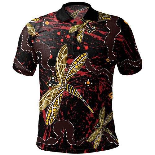 Australia Aboriginal Inspired Polo Shirt – Aboriginal Dragonfly Art Polo Shirt