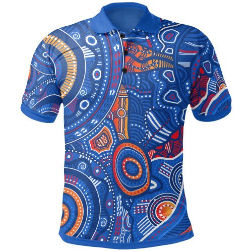 Australia Aboriginal Inspired Polo Shirt – Indigenous Footprint Patterns Blue Color