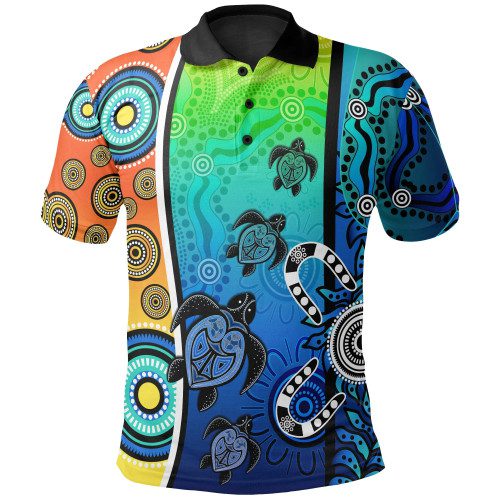 Australia Aboriginal Inspired Polo Shirt – Indigenous Turtle Dot Painting Art