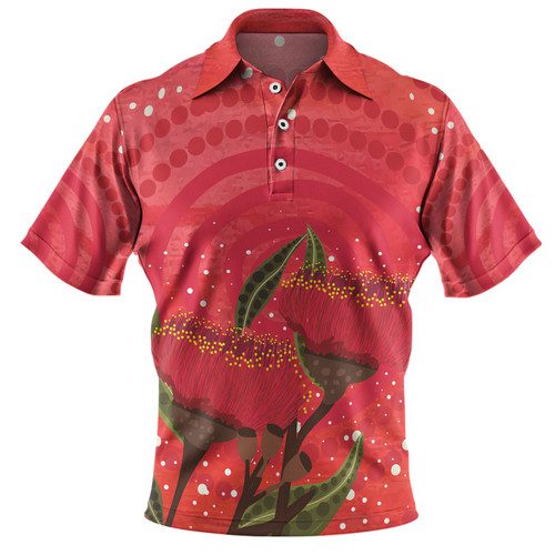 Australia Aboriginal Polo Shirt – Red Aboriginal Art With Eucalyptus Flowers Polo Shirt