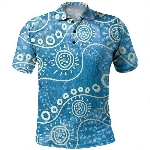 Australia Aboriginal Polo Shirt – River Scene In Aboriginal Dot Art Style Polo Shirt