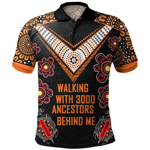 Australia Aboriginal Polo Shirt – Walking with 3000 Ancestors Behind Me Black and Orange Patterns Polo Shirt