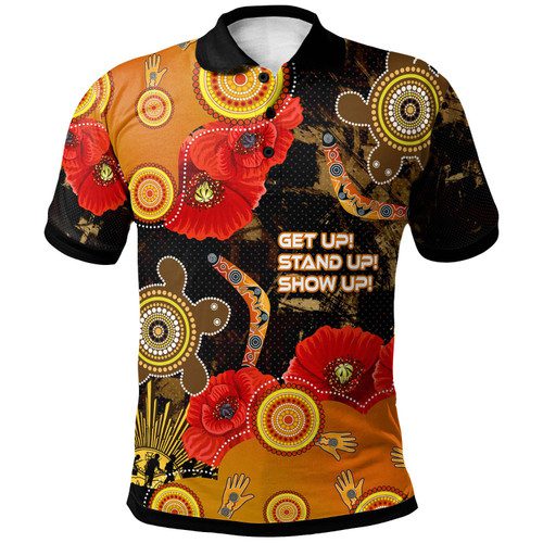 Australia Anzac Day and Naidoc Week Polo Shirt – Poppy Flower with Aboriginal Inspired Style and Turtle Indigenous Polo Shirt