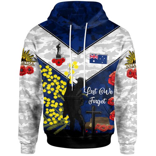 Australia Anzac Day Hoodie – Poppies with Golden Wattle Flowers Lest We Forget