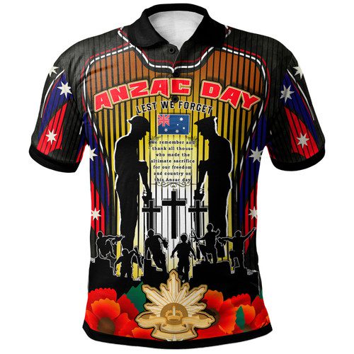 Australia Anzac Day Polo Shirt – Anzac Day ” Lest We Forget ” Quotes With Stripes Patterns Polo Shirt