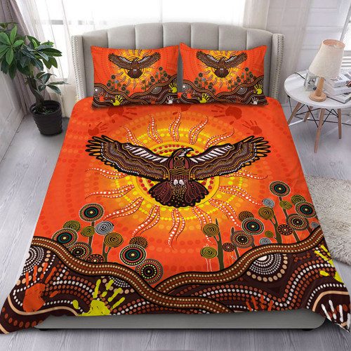 Australia Bedding Set Indigenous Flying Eagle With Aboriginal Dot Art