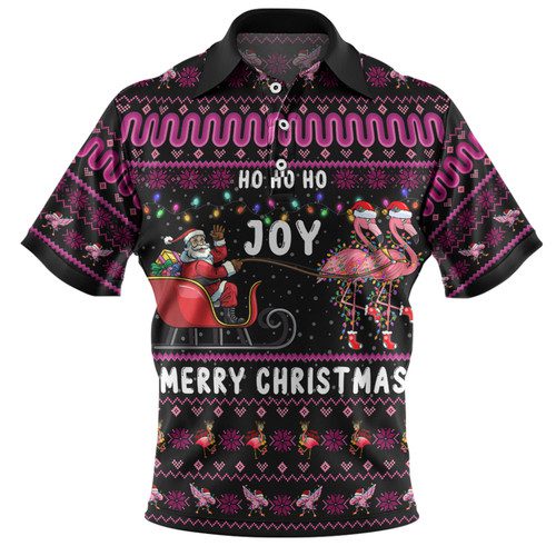 Australia Christmas Custom Polo Shirt – Aussie Christmas Pink Flamingo Santa Sleigh Polo Shirt