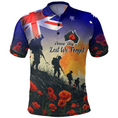 Australia Custom Polo Shirt – Anzac Day Soldiers With Australia Flag