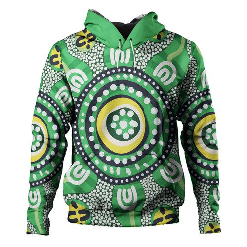 Australia Dot Painting Inspired Aboriginal Hoodie – Green Aboriginal Inspired Dot Art Hoodie