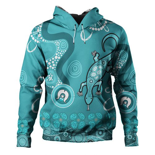 Australia Goanna Aboriginal Hoodie – Indigenous Dot Goanna (Teal Blue) Hoodie