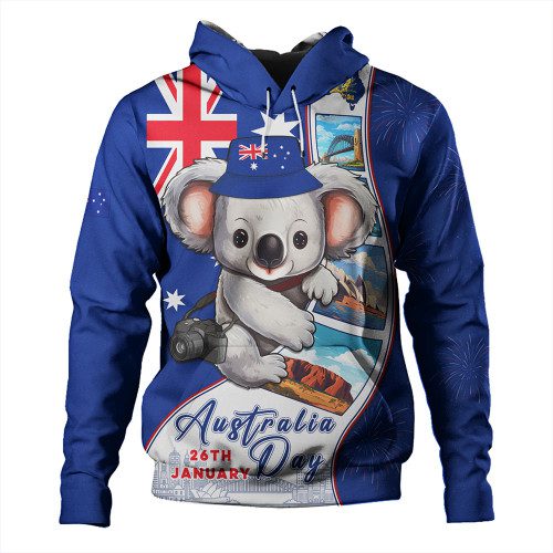 Australia Hoodie Happy Australia Day Koala With Pictures Of Famous Places