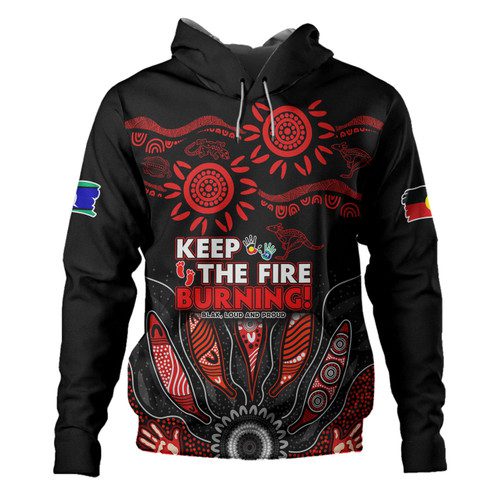 Australia Hoodie Naidoc Week 2024 Indigenous Keep The Fire Burning Aboriginal Gum Leaf Painting Red