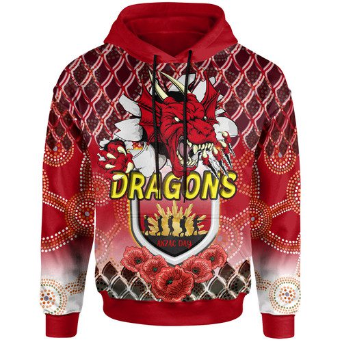 Australia Illawarra and St George Hoodie – Aboriginal Inspired And Anzac Day With Dragons Poppy Flower Patterns Hoodie
