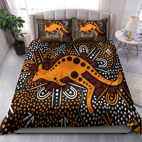 Australia Indigenous Bedding Set – Aboriginal inspired art background with kangaroo