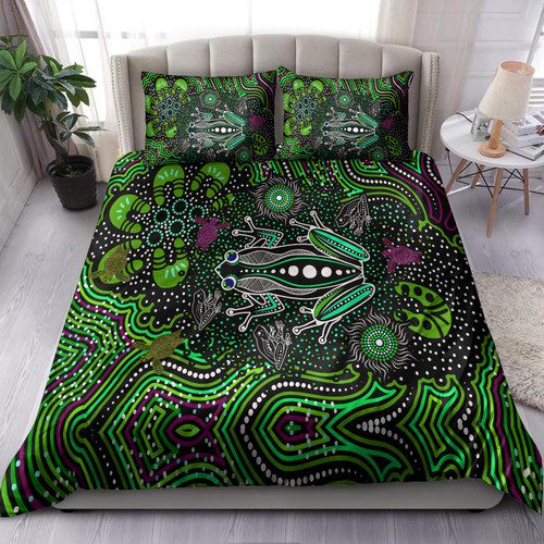 Australia Indigenous Bedding Set – Aboriginal inspired art Frog dreaming dot art background