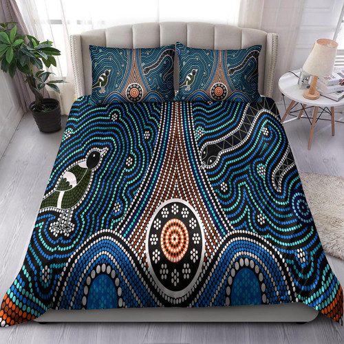 Australia Indigenous Bedding Set – Aboriginal inspired dot painting depicting Fierce Snake and Magpies