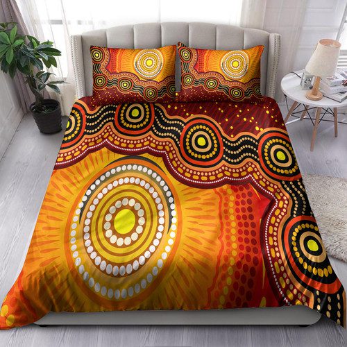 Australia Indigenous Bedding Set – Aboriginal Inspired style of Sun and Dot art background