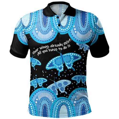 Australia Polo Shirt – Aboriginal Blue Butterflies Art Inspired