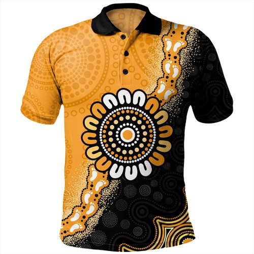 Australia Polo Shirt Aboriginal Indigenous Dot Painting Half People Setting Symbols