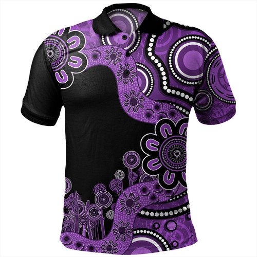 Australia Polo Shirt Aboriginal Indigenous Dot Painting Purple