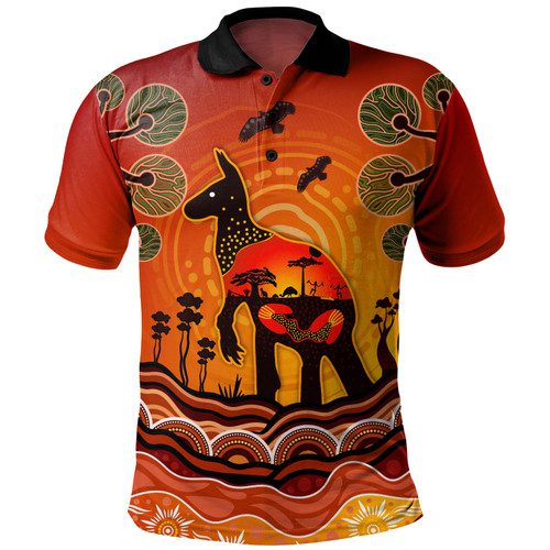 Australia Polo Shirt Aboriginal Indigenous Kangaroo With Dot Painting Pattern