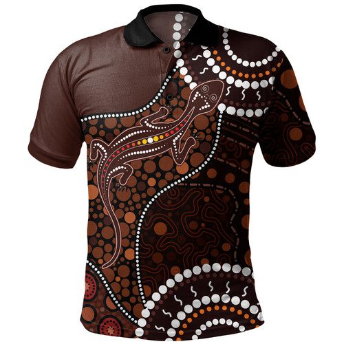 Australia Polo Shirt Aboriginal Inspired Lizard With Dot Painting Pattern