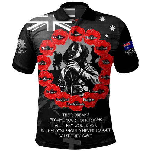 Australia Polo Shirt Anzac Day Lest We Forget Battlefields Remembered