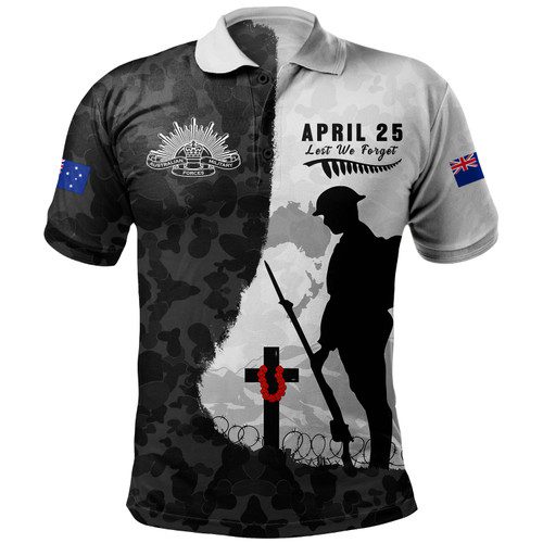 Australia Polo Shirt Anzac Day Lest We Forget Black Grunge Style