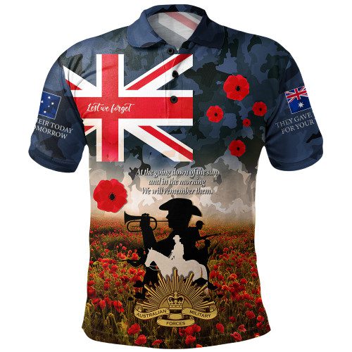 Australia Polo Shirt Anzac Day Lest We Forget Remembrance Day Soldier Poppy Flower