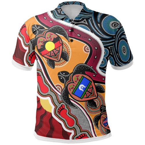 Australia Polo Shirt – Australia Aboriginal Inspired Dots With Turtle and NAIDOC Flags
