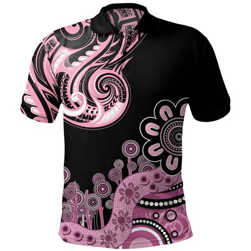 Australia Polo Shirt Custom Maori Pattern Aboriginal Indigenous Dot Painting Baby Pink