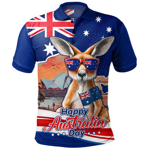 Australia Polo Shirt Happy Australia Day Kangaroo With Sydney Opera House At Sunset