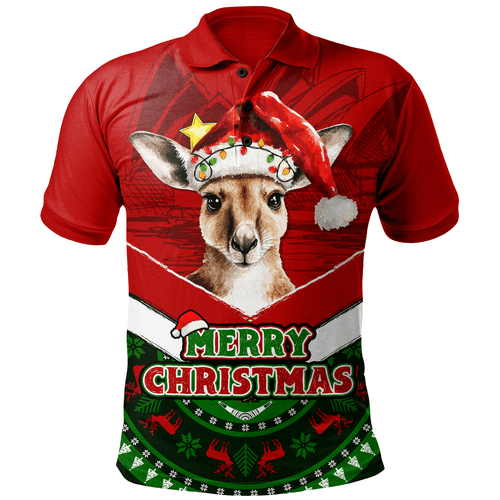 Australia Polo Shirt Holiday Kangaroo Merry Christmas