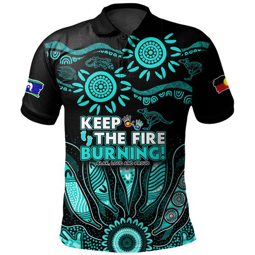 Australia Polo Shirt Naidoc Week 2024 Indigenous Keep The Fire Burning Aboriginal Gum Leaf Painting Turquoise