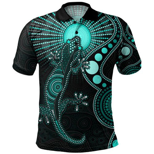 Australia Polo Shirt Turquoise Dreaming Gecko Spirit