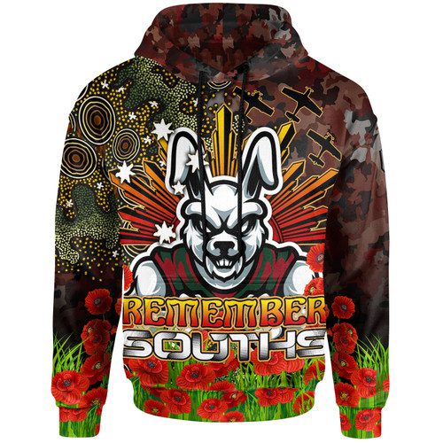 Australia Rabbitohs Custom Hoodie – Anzac Souths with Remembrance Poppy and Indigenous Patterns Hoodie