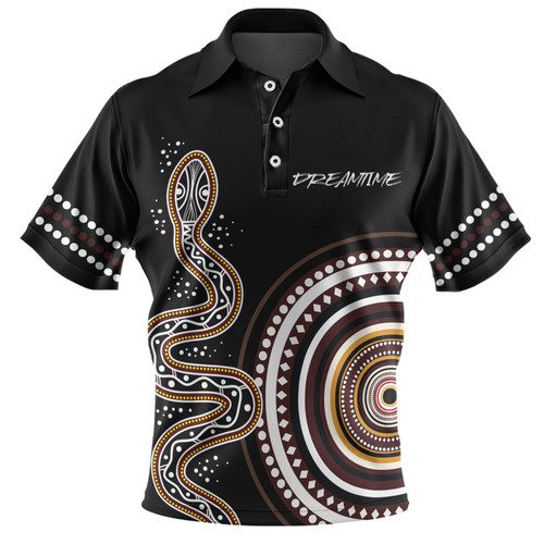 Australia Rainbow Serpent Aboriginal Custom Polo Shirt – Dreamtime Mother of Life Black Polo Shirt