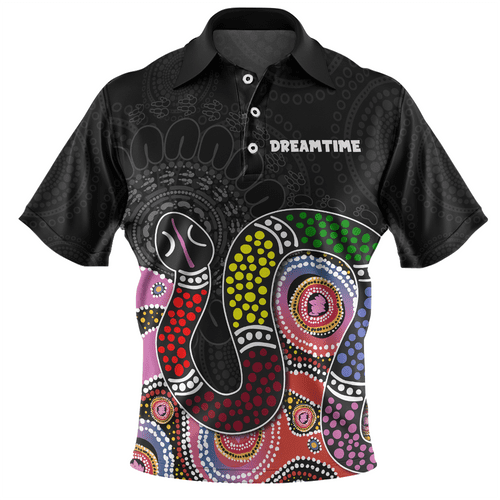 Australia Rainbow Serpent Aboriginal Custom Polo Shirt – Dreamtime Rainbow Serpent Featuring Dot Style Polo Shirt