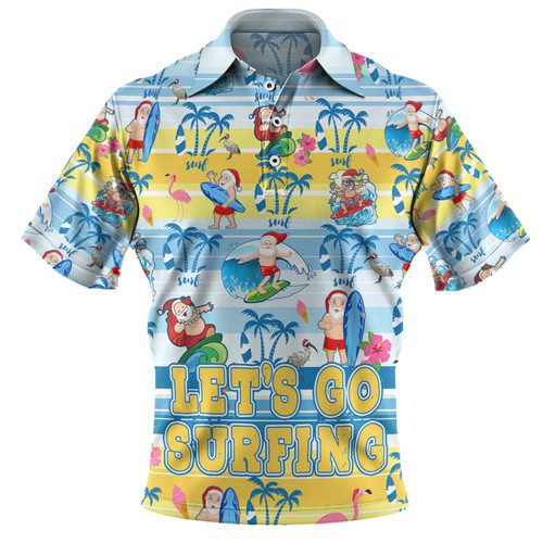 Australia Surfing Christmas Polo Shirt – Tropical Santa Let’s Go Surfing Polo Shirt