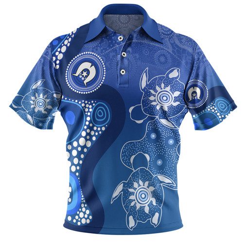 Australia Turtles Aboriginal Polo Shirt – Indigenous Dot Turtles In The Ocean (Blue) Polo Shirt