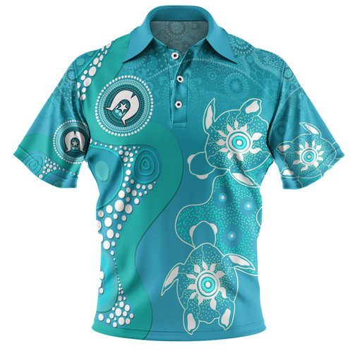 Australia Turtles Aboriginal Polo Shirt – Indigenous Dot Turtles In The Ocean (Turquoise) Polo Shirt