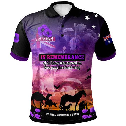 Australia War Animal Memorial Custom Polo Shirt – Spirit Live On Purple Poppy Polo Shirt