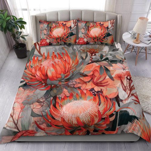 Australia Waratah Bedding Set – Red Orange Waratah Flowers Art Bedding Set