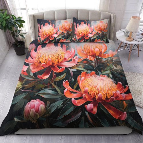 Australia Waratah Bedding Set – Waratah Oil Painting Abstract Ver2 Bedding Set